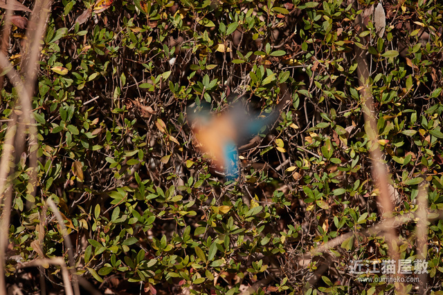ここのカワセミはこの草むらに飛び込むことが多いので、結構厳しい(言い訳)。