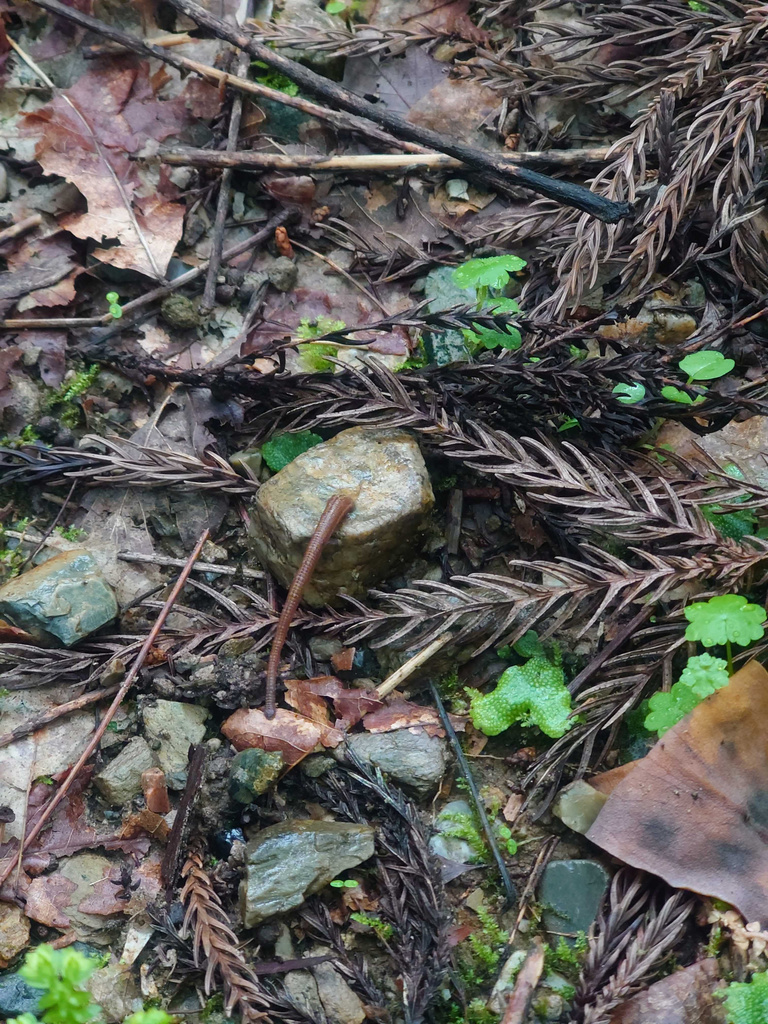 ヤマビルはこんな感じで地面を進んで人間の方に近づいて来て、靴にとりつきます。