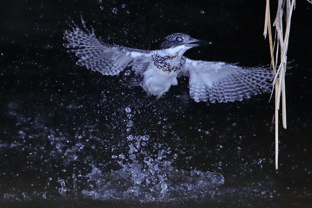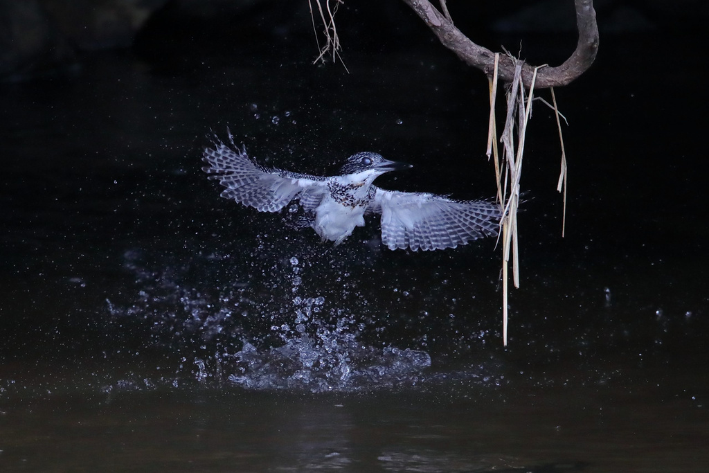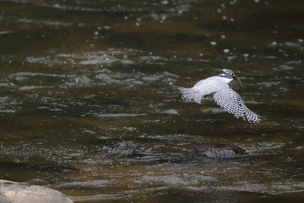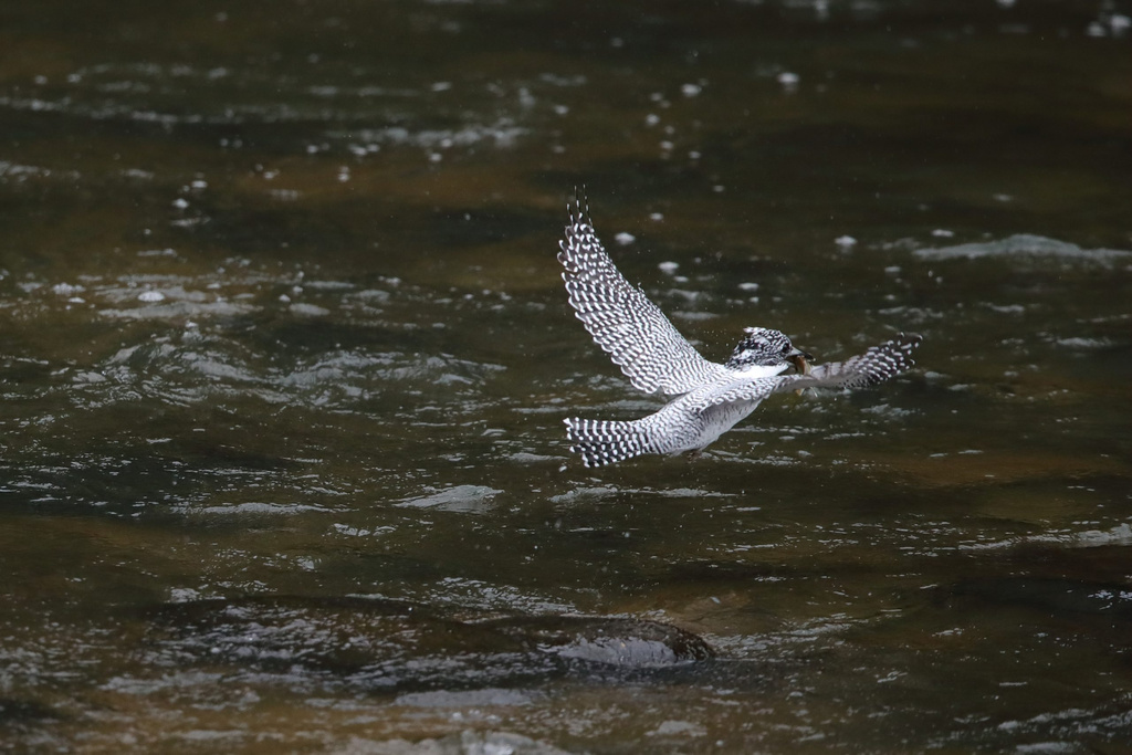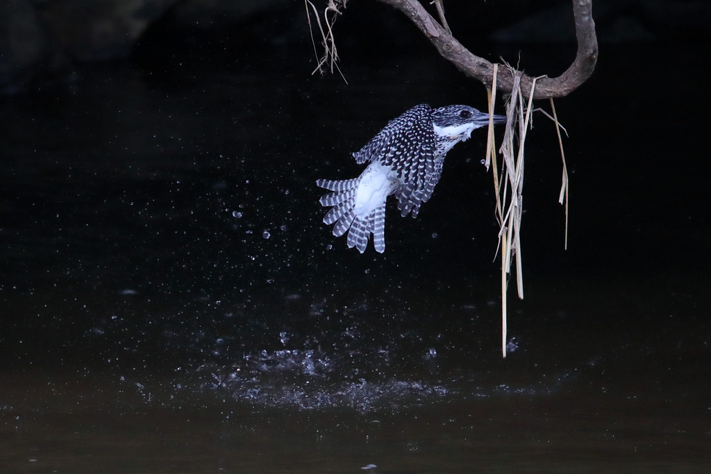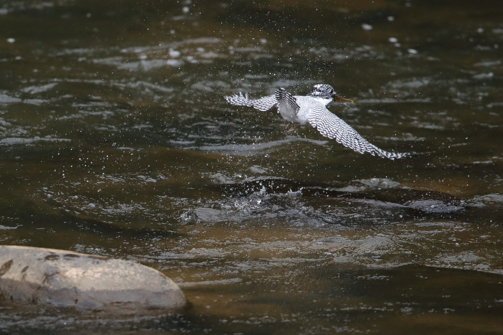 あと、カワセミと違ってヤマセミは体が大きいのでドボン!って感じで少しスローで、普段カワセミを撮っている身としてはかなり笑えます。
