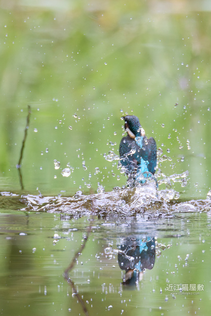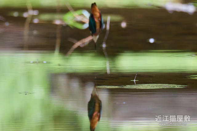 水面に写りこむカワセミの姿、一応まともなのが1枚は撮れて一安心。