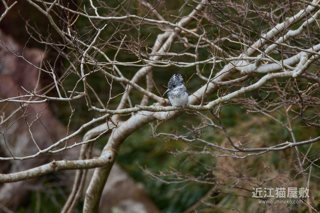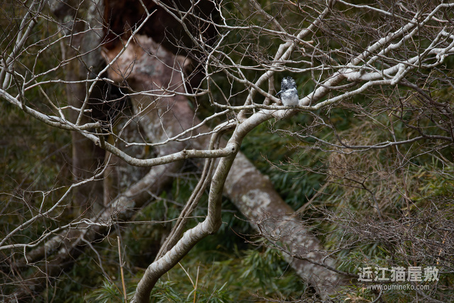 この撮影場所では最も近い距離でヤマセミを撮影できるポイントにとまってくれた....のですが、残念ながらどなたかがヤマセミが逃げる距離まで近づいてしまったようで、すぐに飛んでしまいました。