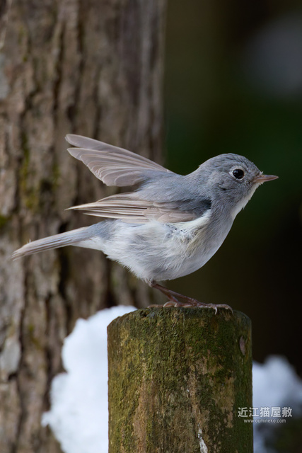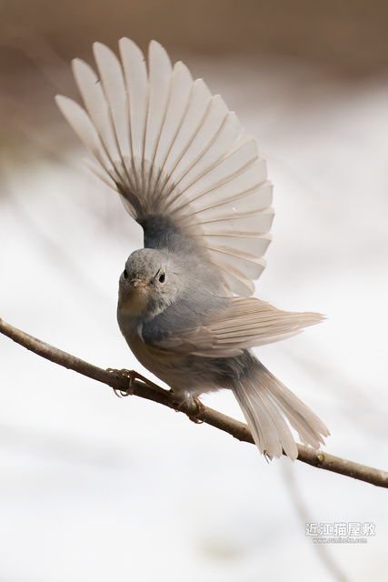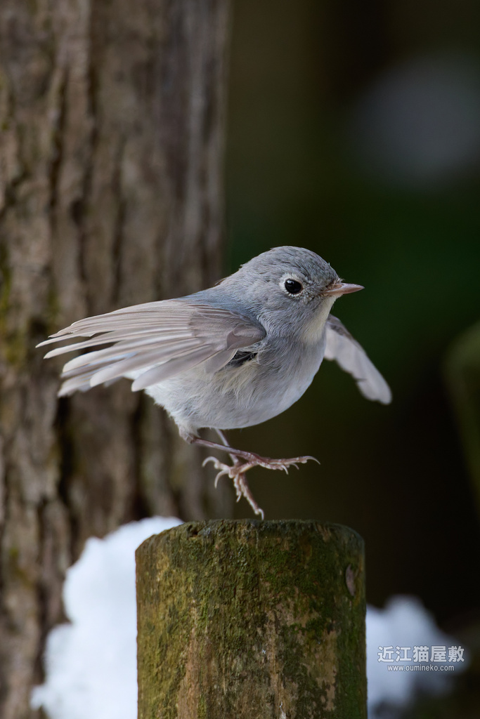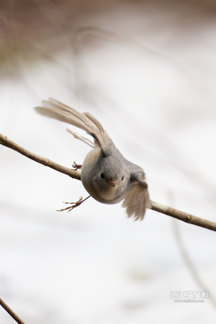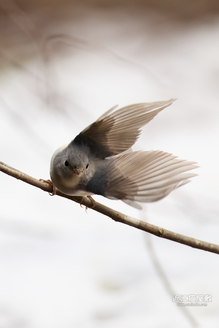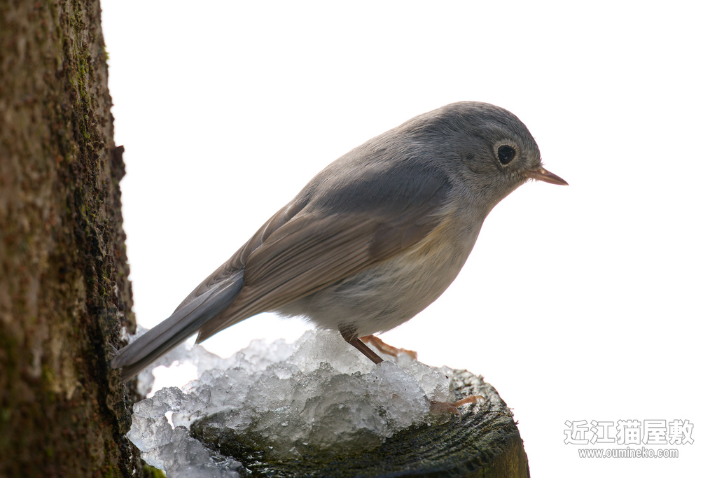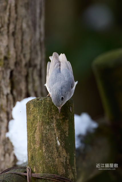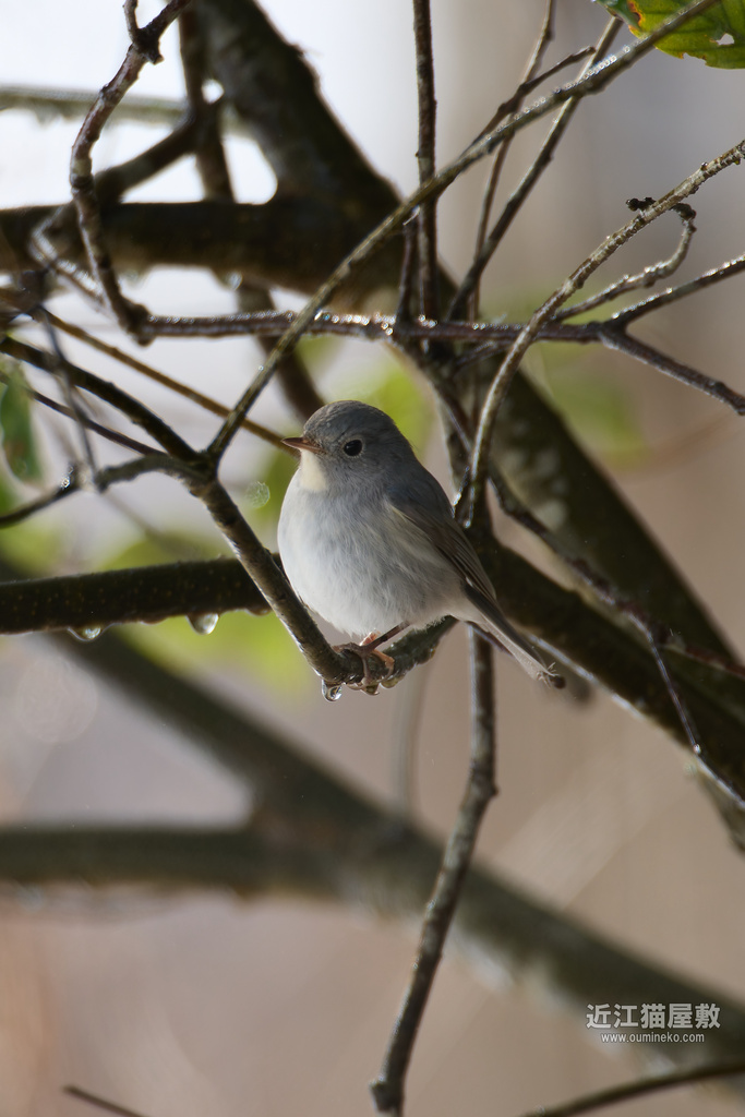 初めて撮った時は日陰だったので全身が白く見えたのですが、カワセミ然り青色の鳥は大体構造色なので光があたると青っぽいグレーに見えますね。